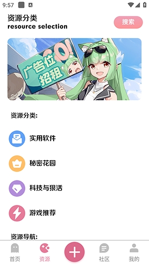 1、用户可以通过搜索框快速定位到所需的资源,如软件、游戏、影视、音乐、小说等。