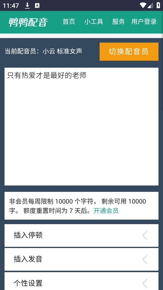 1、多种合成主播:特色主播、男声女声童声主播、新闻主播、英语主播,更有四川、东北、粤语等方言主播。