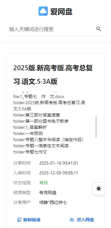 2、内置爬虫系统每日持续抓取全网最新公开分享的链接,资源库保持动态更新,新鲜内容随时可查。