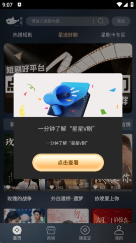 星星V剧是一款短剧平台,这里不止提供了丰富的短剧资源,还集热门短剧观看与任务赚利于一体,既能免费追更各类精彩剧集,又能通过简单任务获取星豆变现,适合喜欢短剧并希望兼顾娱乐与收益的用户尝试。
