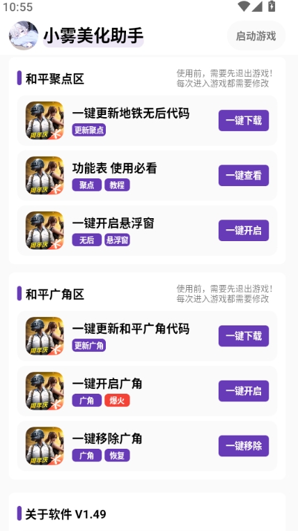 5、启动和平精英,通过悬浮窗管理美化效果,需恢复时点击 “一键还原”即可。
