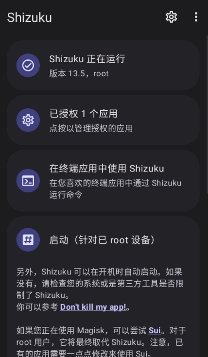 2、安卓11-15设备按提示安装 Shizuku,完成授权;。