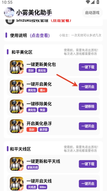 4、授权完成后重启“吃鸡美化助手“应用