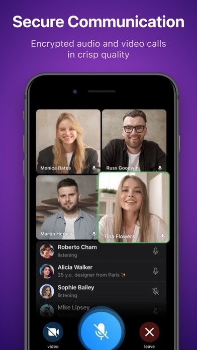 4、语音通话功能可让您通过互联网连接在全球任何在其设备上使用此应用程序的联系人之间进行免费语音/视频通话!