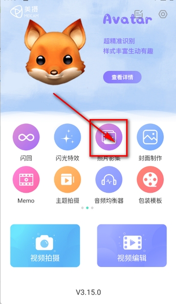 1、下载安装并打开美摄,找到并点击照片影集功能