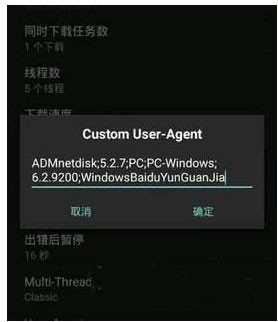 3、在对话框中选择 "Custom" (自定义);最后在 “Custom项”中填写、netdisk;5.2.7;PC;PC-Windows;6.2.9200;WindowsBaiduYunGuanJia