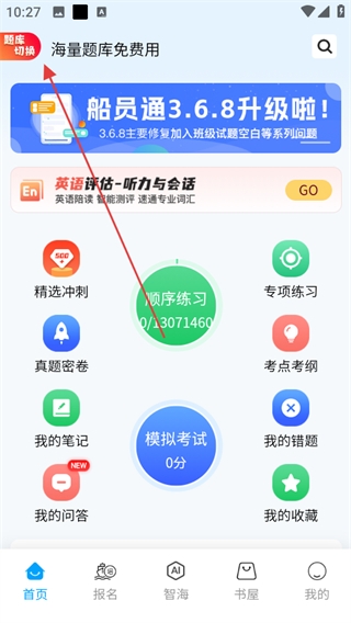 4、此时回到首页,即可在上方看到刚才选择的题库。