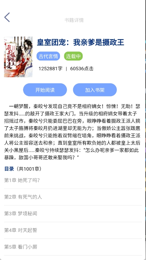 4、在阅读页,查看【小说内容】,沉浸式感受故事情节。