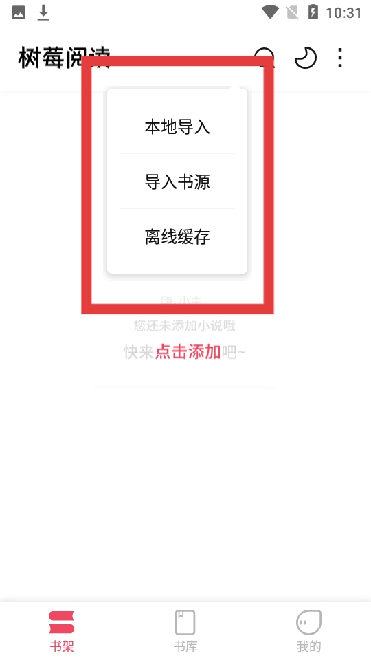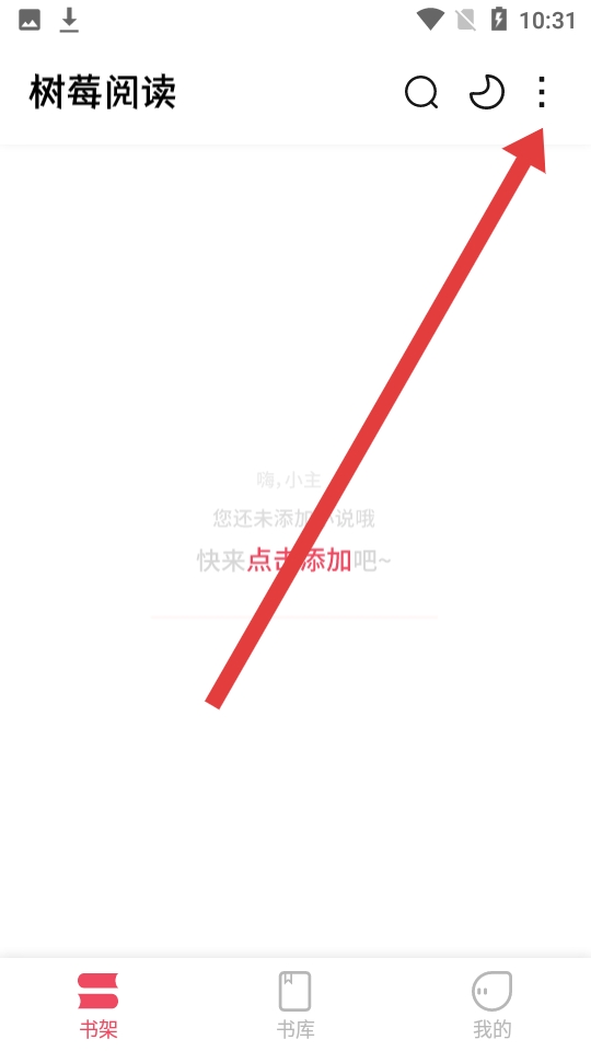 2、在进入书架页面后,点击书架界面右上角的三点图标菜单按钮,打开导入选项。