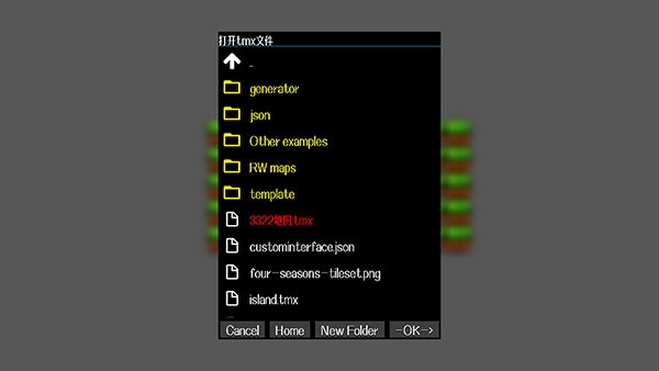 2、然后点击打开按钮,选择后缀名为.tmx的地图文件,点击OK即可完成导入。