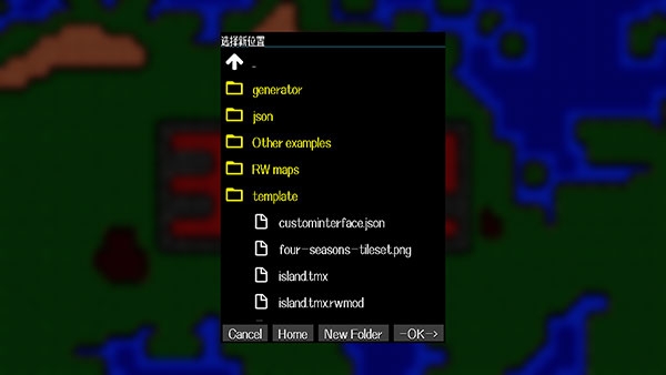 1、想要在NotTiled中导入已有的地图文件其实只需要打开游戏菜单。