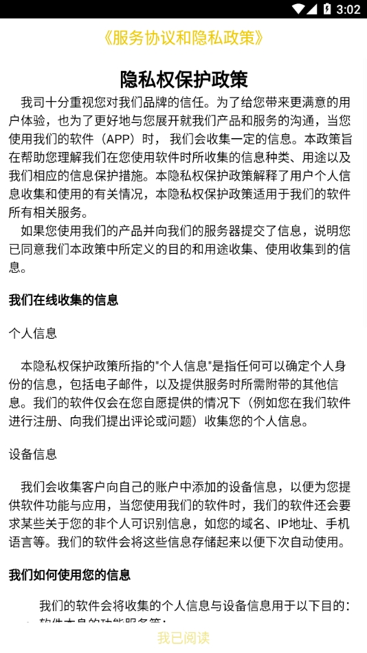 1、首次启动应用时,系统会显示用户协议和隐私政策,阅读后点击同意按钮进入主界面。