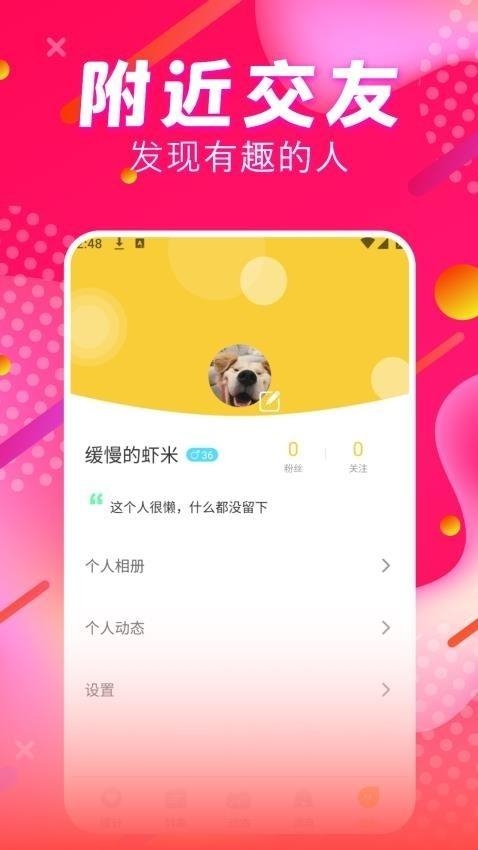 4、附近交友基于真实地理位置,构建贴近生活的社交场景,让线上交流更容易转化为线下真实社交关系。