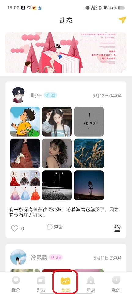 第三步:动态,随时可以浏览或者发布即可。