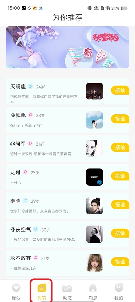 第二步:列表,好友交友列表添加搭讪等。