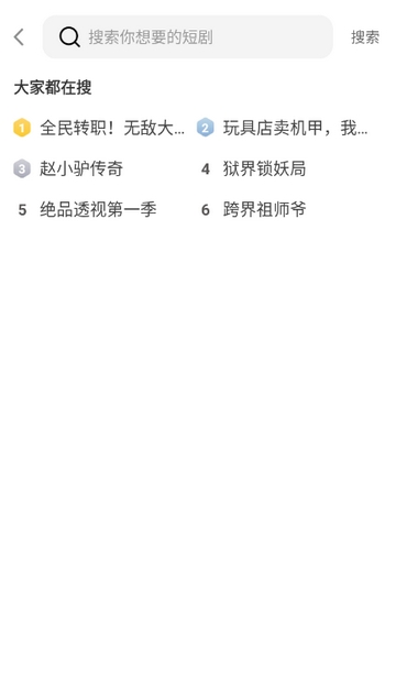 3、漫剧搜索:输入自己感兴趣的动漫关键字,帮助你能精准匹配找到,并能立即观看,简单方便。