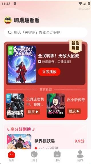 嗨漫趣看看app一款动漫爱好者必备的追剧神器,海量丰富的漫画的资源内容,全面满足你漫画观看的体验,可通过关键词搜索快速锁定心仪作品,方便随时追更,让你享受文化生活、追漫不负担!快来体验吧!