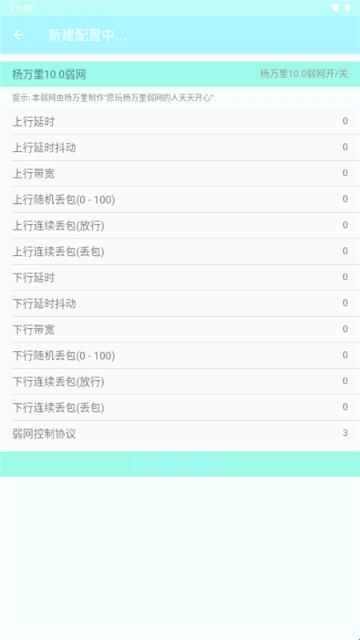 杨万里10.0弱网是一款非常受欢迎的精彩弱网参数软件,可以在这里自定义参数配置,导入手机内安装的任何软件或者游戏,利用网络延迟来骗取相应的装备,而且软件自带参数设置,对指定软件进行网络优化处理。
