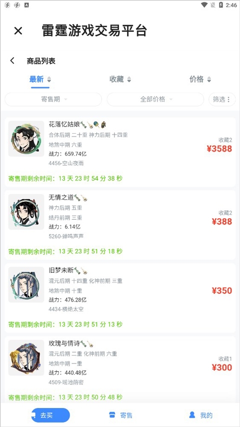 3、在平台上可以直接购买账号或将自己的账号寄售,完成交易后,所有操作均受官方保障。