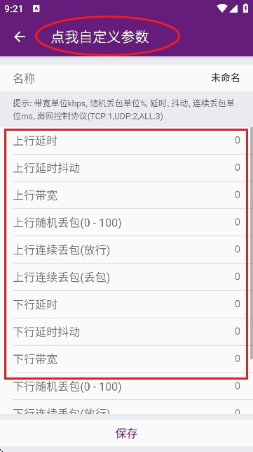 在选定应用后,进入参数设置界面。您可以根据测试需求自定义网络环境,包括模拟延迟、丢包率、带宽限制等常见弱网场景,全面还原真实网络问题。
