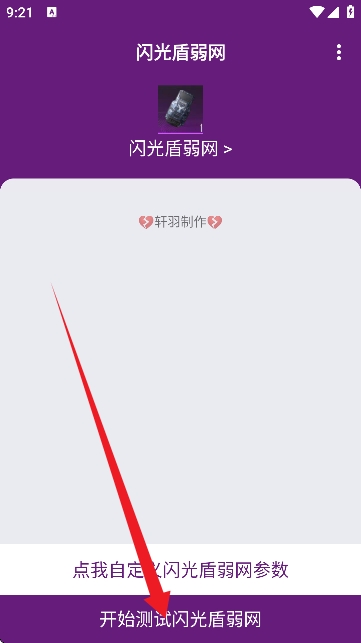 首先,请在本平台下载并安装“闪光盾弱网”App。点击页面中所示箭头指示的位置,