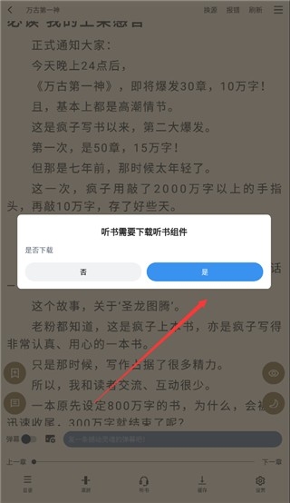 2、点击听书功能会提示你下载一个听书插件,选择是即可下载;