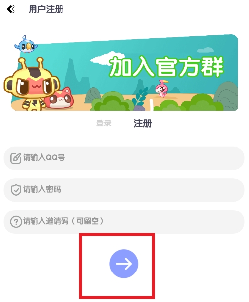 2、按照页面的提示输入QQ号和密码,然后点击注册按钮。