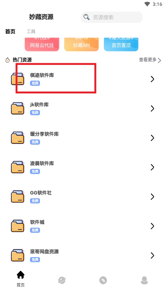 6、点击感兴趣的软件库或游戏资源分类,浏览并选择需要的资源。