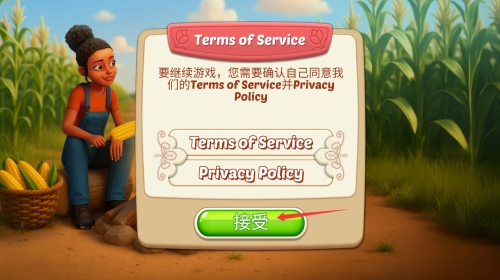 2、阅读服务条款内容,选择接受按钮确认。