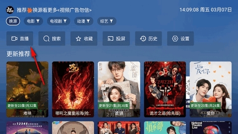 2、即可切换到电视直播
