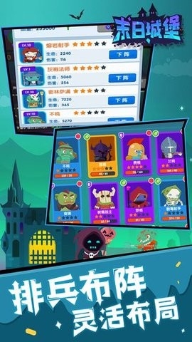 3、百变魔法城堡:高耸的城墙不断的经受考验,用坚固的身躯守卫着最后的家园,辛苦之余吸血鬼们不忘装扮着城堡,提高城堡的防御值,抵御一波波的攻击。