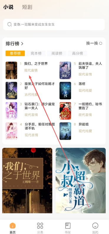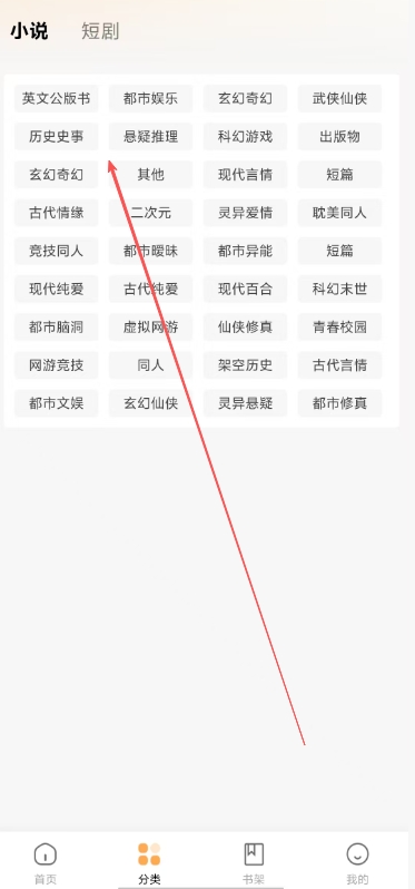 2.之后在分类页面中用户还可以对小说和短剧进行选择,方便用户进行定位选择。