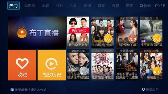 1、下载并打开布丁视频,进入首页可看到热门推荐、影视分类和直播频道。