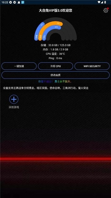 大白兔画质是一款非常好用的游戏辅助工具,支持用户自定义调整分辨率、帧率、HDR效果等多个参数,玩家可以自由设定画质的分辨率,吃鸡不在话下,确保游戏画面清晰细腻,即使在低配手机上也能流畅运行。