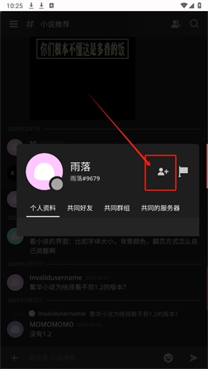 2、点击头像,点击箭头所指的图标进行添加好友