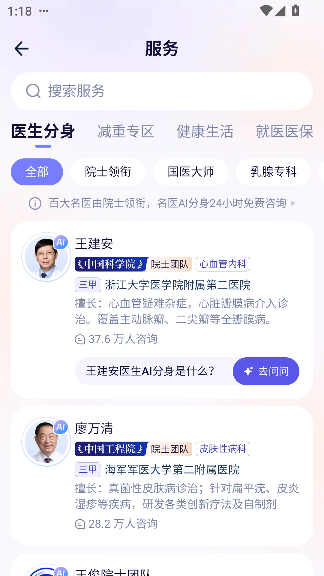 5、软件中所有的医生都是非常专业的,资历非常深厚。