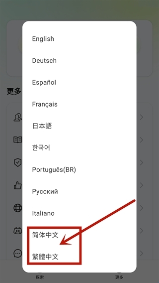 当然,找到“更多→语言→中文”也可以轻松设置为中文