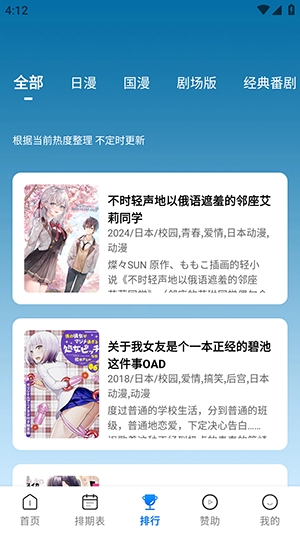 3、用户们也可以点击排行榜,快速查找自己喜欢的动漫