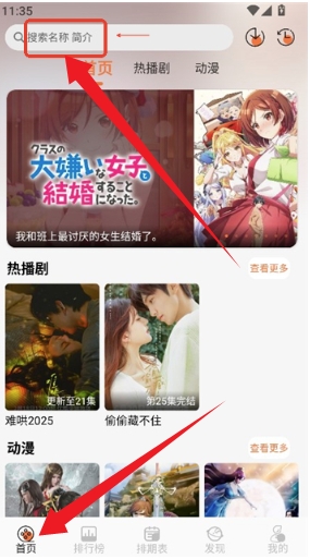 2、进入app,点击搜索栏搜索自己喜欢的动漫