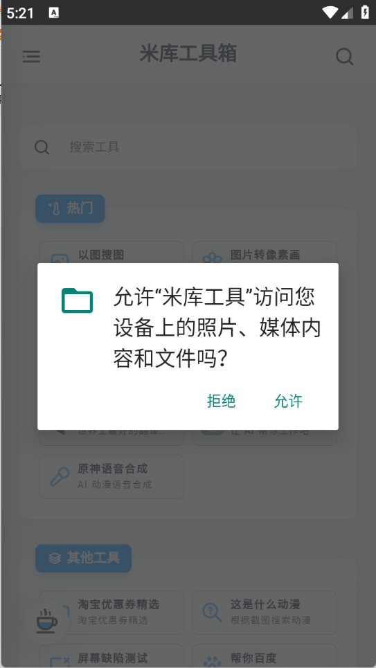 1、在手机上打开米库工具app,开启软件所需的相关权限。