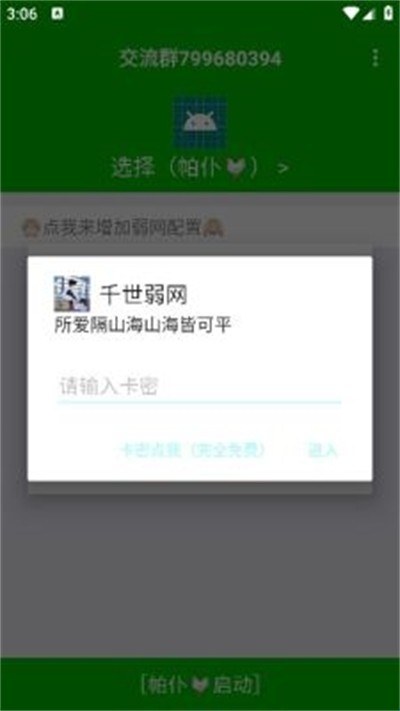 1、下载安装并打开千世弱网app,进入首页之后,点击【选择】选择应用。