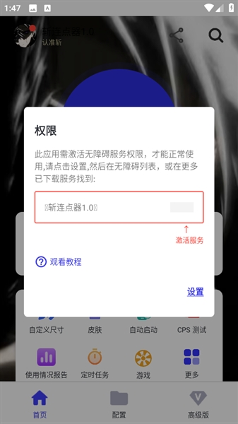 7、然后确认并启动应用程序打开自动点击控制器。