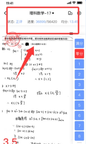 3、选择待批改试卷,查看题目与答案,使用打分工具快速评分,支持滑动或点击操作。