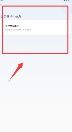 2、登录注册后,选择完善学生信息绑定后可以进入首页开始使用。