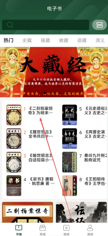 1.用户进入软件之后可以直接在书城页面中对感兴趣的书籍进行阅读。