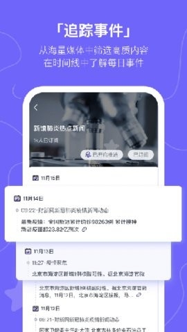 对于您感兴趣的新闻事件,可以通过便捷的追踪按钮进行订阅,确保在第一时间将事件的最新进展通知给您,无需花费力气自行寻找,所有事件尽在掌握。
