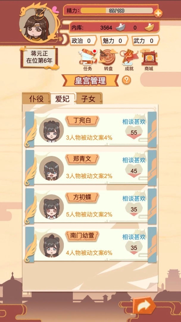 每年我们都可以决定依次是否要进行选妃,进入选妃可以快速补充后宫人员。