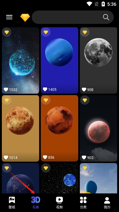 3、汇集了海量动态壁纸的资源库,无论是3D视觉,4D动态还是视频都应有尽有。