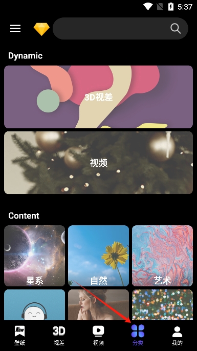 3、点击软件内置的分类可以查看所有已经分类的壁纸,无论什么类型都可以在这里找到
