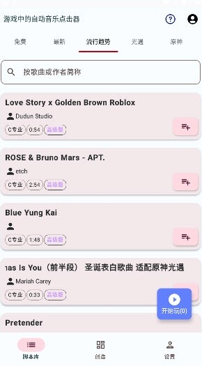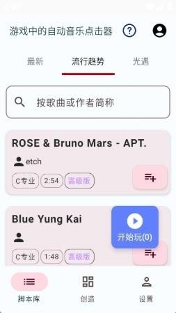 6.在主页中点击右下角【开始玩】,出现脚本列表;